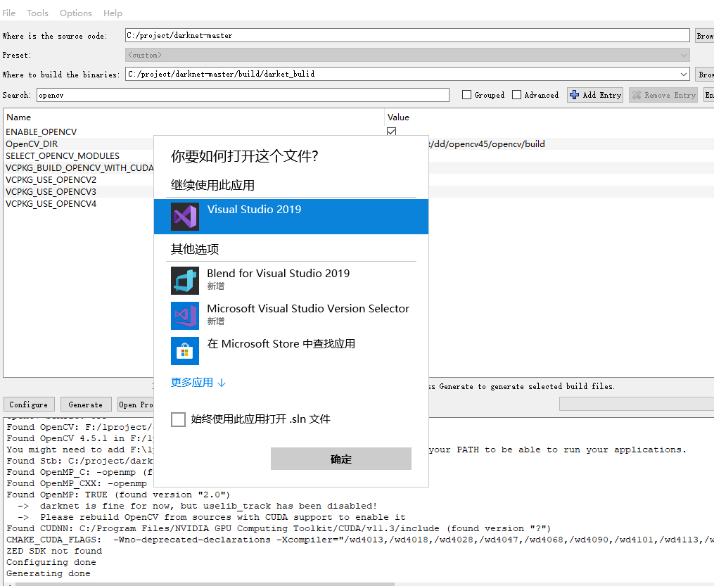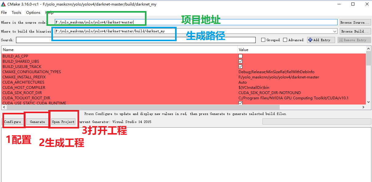 1 自带的工程需要opencv_world,我的opencv没有这个,只能重新自己camke了。