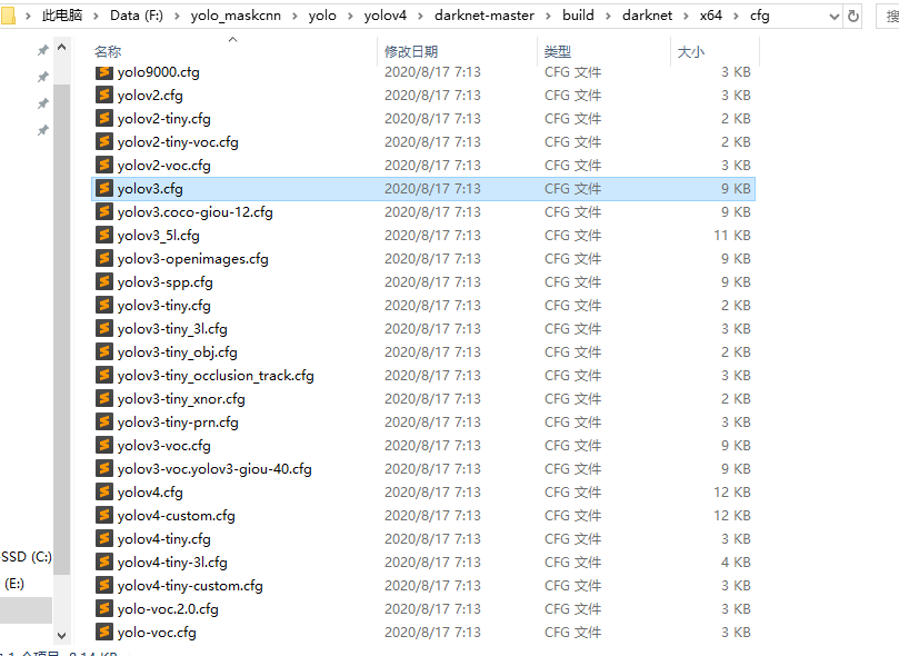 - cfg/yolov3.cfg:中定义的是yolov3的模型