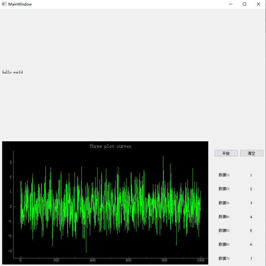 import sys from PyQt5.QtWidgets import QApplication, QWidget,QMainWindow from PyQt5.QtGui import QIcon import pyqtgraph as pg import numpy as np #导入类 from UI_1test import * #一个是这个类本身的,一个是这个类继承 class Example(QMainWindow,Ui_MainWindow): def __init__(self): #QMainWindow.__init__(self) #Ui_MainWindow.__init__(self) super(Example, self).__init__() self.setupUi(self) #自己增加初始化 self.Int_UI() #自己增加按钮事件 self.pushButton_1.clicked.connect(self.helloworld) #按键对应出发函数 def helloworld(self):#label上显示文字hello world self.label.setText("hello world") #读取txt 赋予数组 self.x = np.arange(1000) self.y = np.random.normal(size=1000) self.plt1.plot(self.x, self.y, pen=(1, 3)) def Int_UI(self): #初始化创建表格 self.plt1 = pg.PlotWidget(title="Three plot curves") self.verticalLayout_2.addWidget(self.plt1) if __name__ == '__main__': app = QApplication(sys.argv) ui=Example() ui.show() sys.exit(app.exec_())