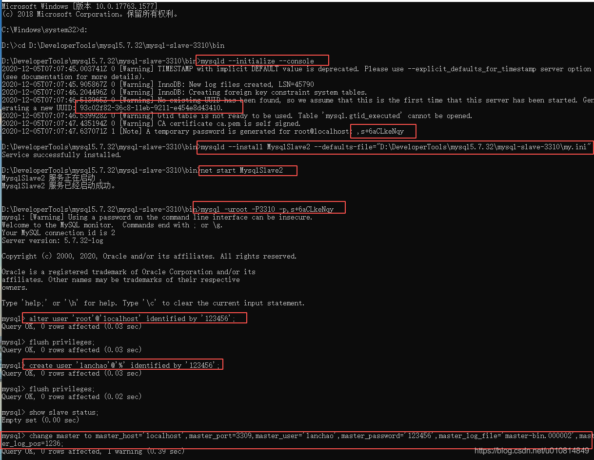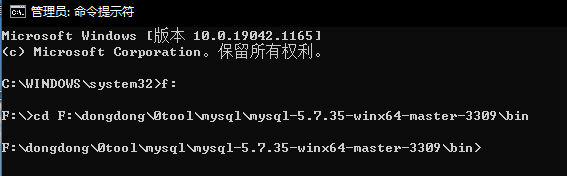 管理员权限打开控制台cmd,在mysql解压目录bin下执行以下命令: