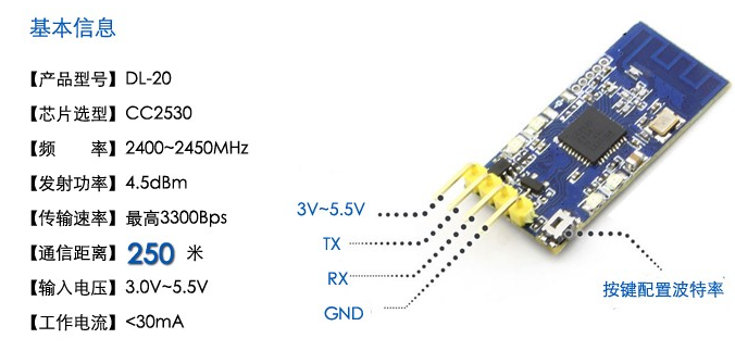 2.4G zigbee无线串口收发模块 CC2530数据透传 点对点广播模式TTL