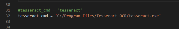 搜索找到pytesseract.py,打开该.py文件,找到 tesseract_cmd,改变它的值为刚才安装 tesseract.exe 的路径。