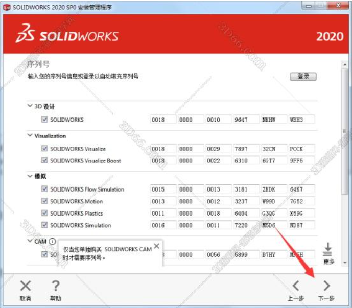 自动检测序列号通过后,直接点击“下一步”