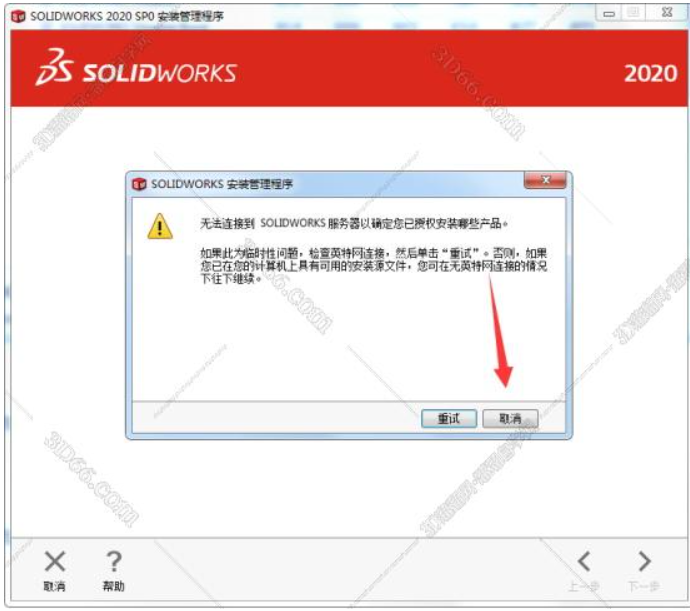 提示连接网络失败【必须失败】,点击“取消”,或者点击X。