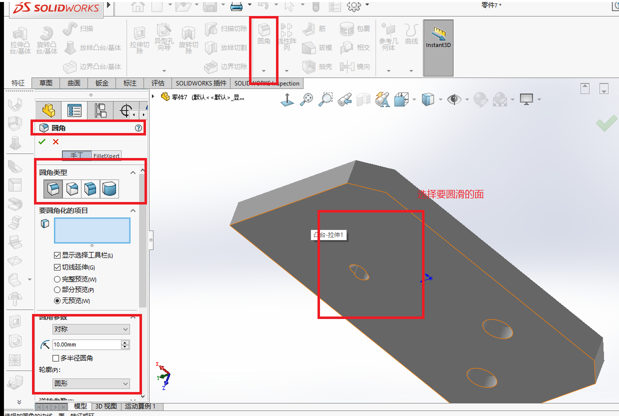 SolidWorks2020学习(6) 开孔 边角柔和化