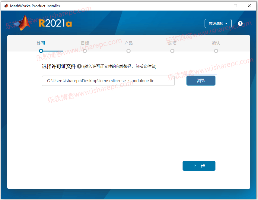 在许可证界面,浏览选择Crack里的许可证license_standalone.lic