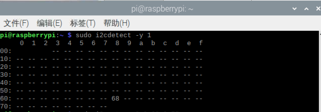 sudo i2cdetect -y 1 //这里有点忘记了,也可能是0,最后出来这个就对了