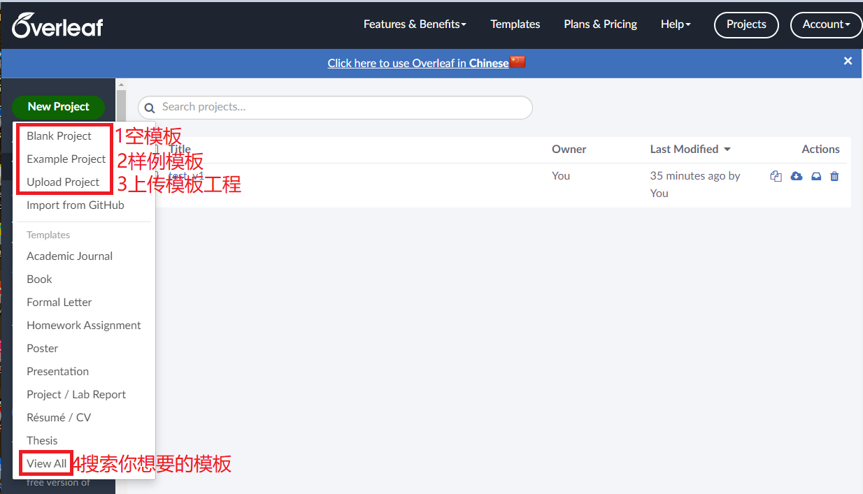 在View all搜索所有模板中,可以寻找你自己需要的模板,然后点击open as templat打开