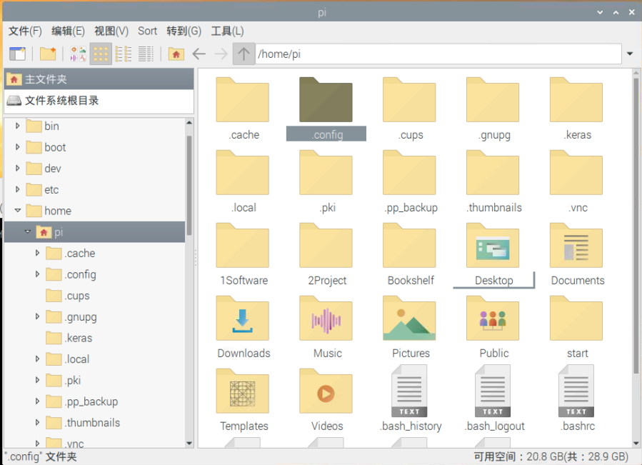 进入当前用户HOME目录下的.config目录(这是一个隐藏目录,需用ls -a显示出来)