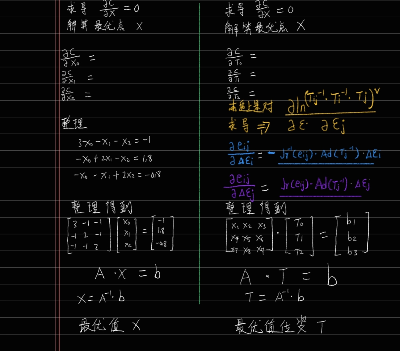 我们已经学习过李群李代数的知识了,我们知道优化问题的相关数学如下: