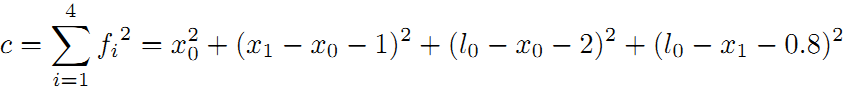 前面是用闭环检测,这次用观测的路标(landmark)来构建边。如下图所示,假设一个机器人初始起点在0处,并观测到其正前方2m处有一个路标。然后机器人向前移动,通过编码器测得它向前移动了1m,这时观测到路标在其前方0.8m。请问,机器人位姿和路标位姿的最优状态?