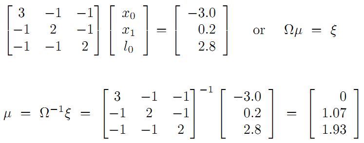 将这个结果和之前对比,可以看到这里的机器人位姿x1更靠近编码器测量的结果。请记住这种思想,这里的权重就是在后面将要经常提到的边的信息矩阵,在后面还将介绍。