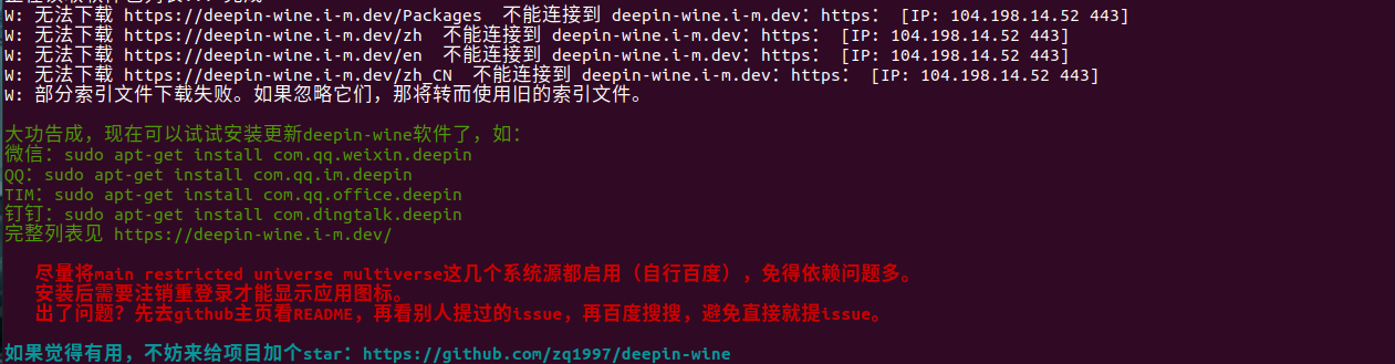 微信:sudo apt-get install com.qq.weixin.deepin QQ:sudo apt-get install com.qq.im.deepin TIM:sudo apt-get install com.qq.office.deepin 钉钉:sudo apt-get install com.dingtalk.deepin 完整列表见 https://deepin-wine.i-m.dev/