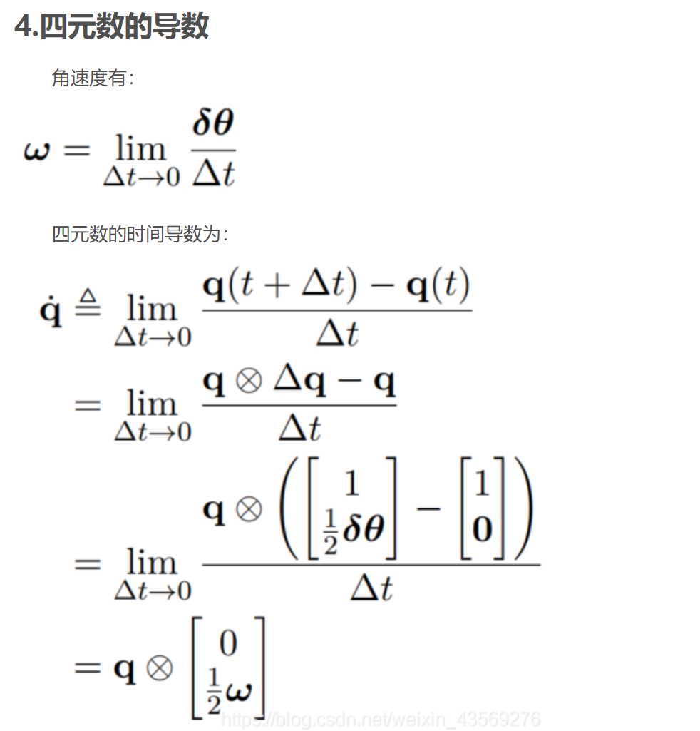 知道四元数的导数之后就可以结合IMU运动模型理解连续时间IMU预积分了。