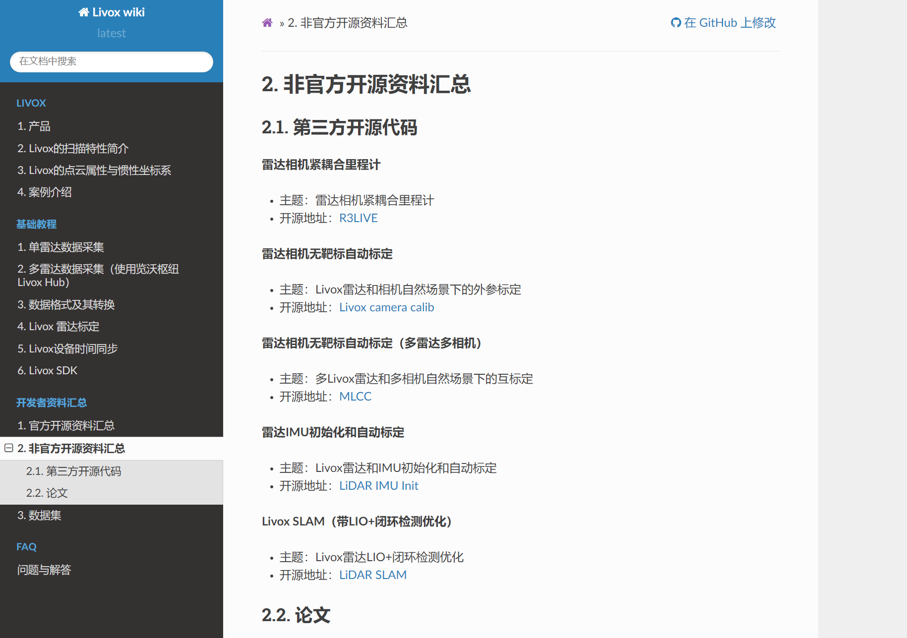 https://livox-wiki-cn.readthedocs.io/zh_CN/latest/index.html
