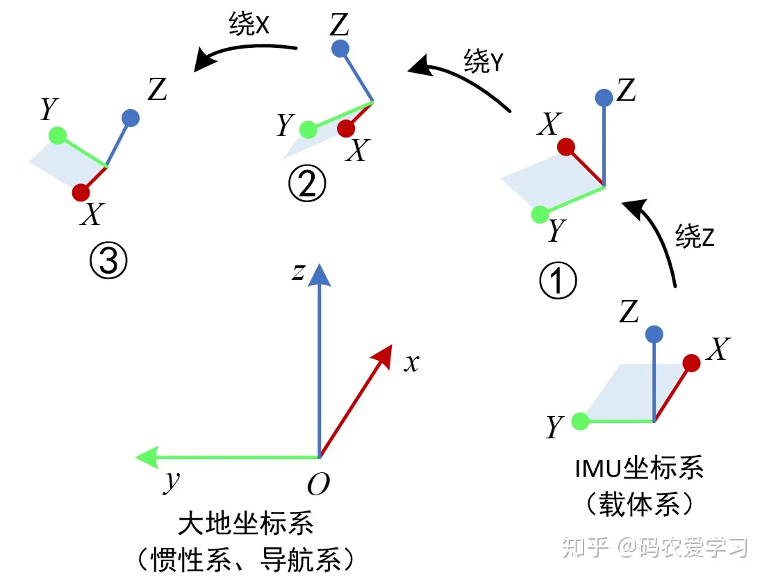 这里需要说明的是,本篇需要用到的绕着自己运动的轴,以ZYX顺序旋转。