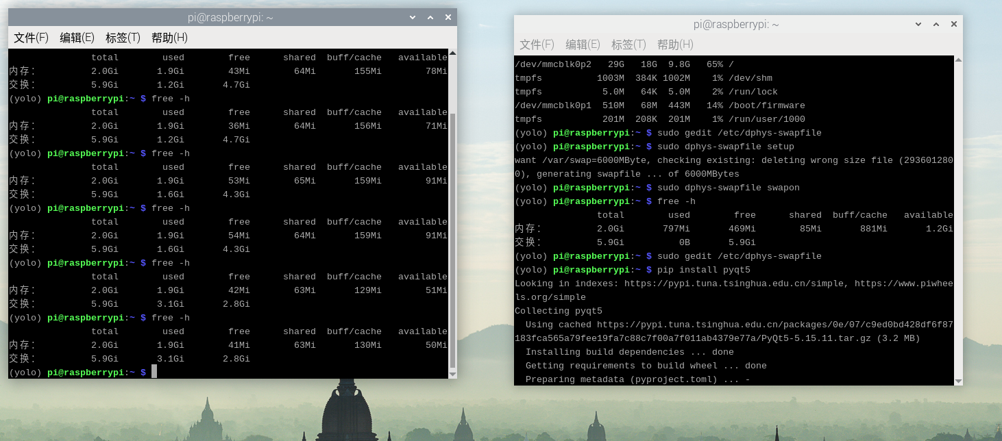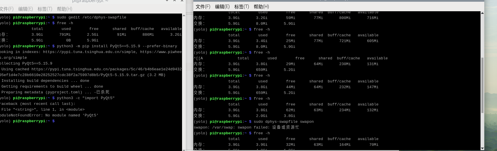 树莓派使用 microSD 卡作为硬盘,频繁写入 swap 会加速寿命衰减。建议只在编译、安装 PyQt5 这类大包时临时启用。