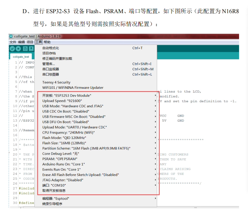 ESP32-S3-WROOM-1-N16R8 内置sram512K,内置ROM384K,模组外挂16M字节的SPI Flash,外挂8M psram(psram需要程序配置启用)