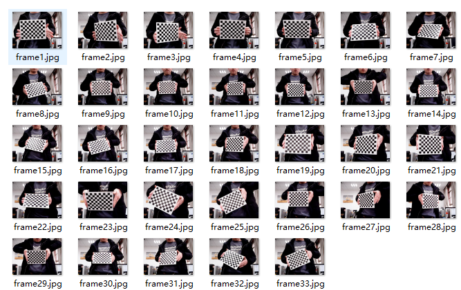 可以预览成功检测出棋盘格的图像,然后开始标定,点击Calibrate