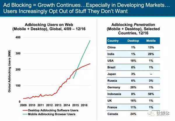 9、更多的用户在屏蔽广告在数据成本可能较高的发展中市场,用户越加倾向于尽可能屏蔽广告。全球大约又4亿用户会屏蔽广告。
