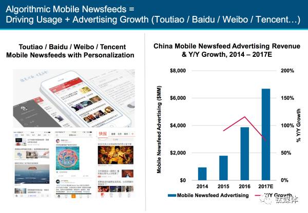 46、新闻资讯行业驱动了中国广告收入30%的增长得益于使用算法为用户推送新闻资讯的平台,如头条、百度、微博、腾讯等,新闻资讯广告收入今年有大约70%的增长。