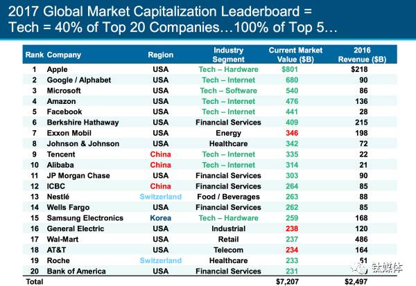 51、互联网公司领导公共市场今年市值最高的五所公司均来自科技领域,前20有40%的公司为科技公司。