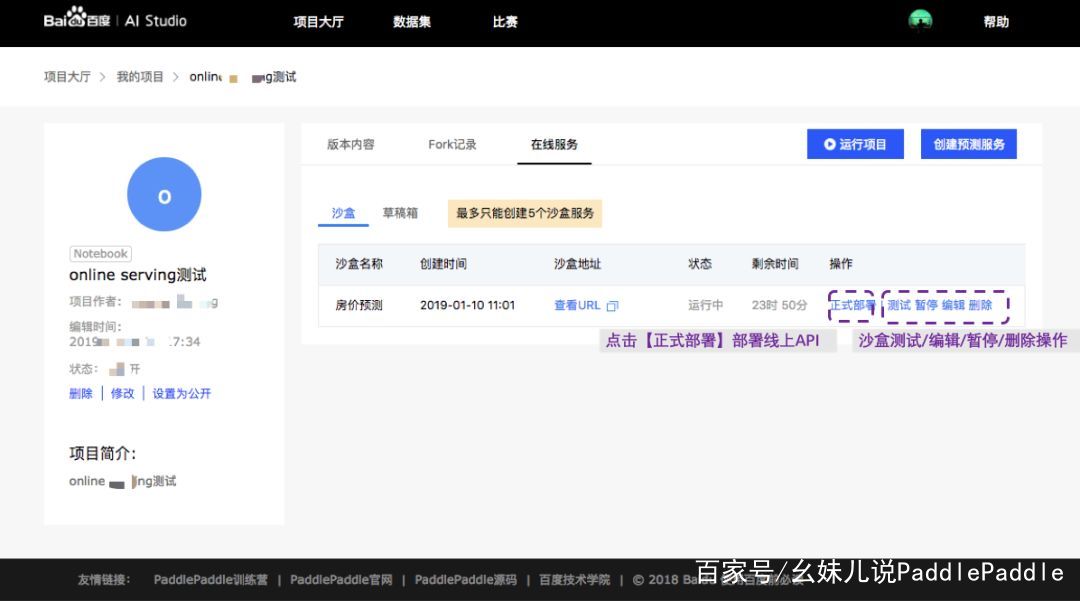 这次升级,AI Studio不光调整了前端页面,还增加了不少新功能,其中就包含我们今天要说的在线部署及预测功能。