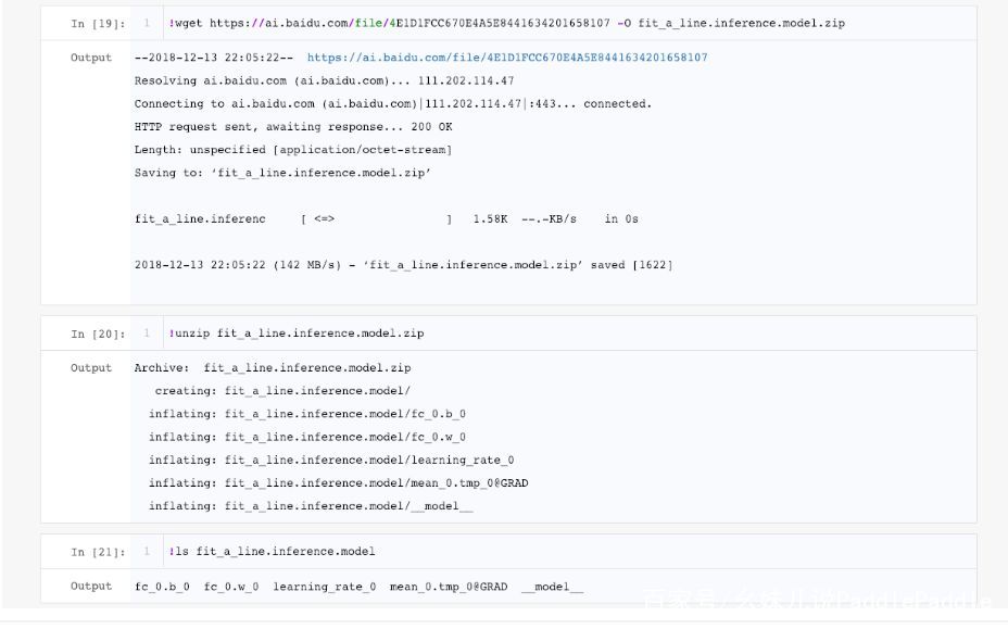 !wget https://ai.baidu.com/file/4E1D1FCC670E4A5E8441634201658107 -O fit_a_line.inference.model