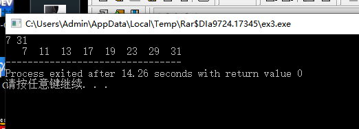 #include <stdio.h> #define N 1000 int fun(int n,int m,int bb[N]) { int i,j,k=0,flag; for(j=n;j<=m;j++) { flag=1; for(i=2;i<j;i++) if(j%i==0/*补足2*/) { flag=0; break; } if(flag!=0/*补足3*/) bb[k++]=j; } return k; } int main(){ int n=0,m=0,i,k,bb[N]; scanf("%d",&n); scanf("%d",&m); for(i=0;i<m-n;i++) bb[i]=0; k=fun(n,m,bb/*补足4*/); for(i=0;i<k;i++) printf("%4d",bb[i]); return 0; }