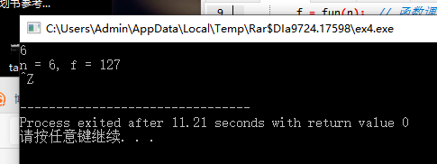#include <stdio.h> long long fun(int n); // 函数声明 int main() { int n; long long f; while(scanf("%d", &n) != EOF) { f = fun(n); // 函数调用 printf("n = %d, f = %lld\n", n, f); } return 0; } // 函数定义 long long fun (int n){ long long f; if(n==0){ f=1; } else { f=2*fun(n-1)+1; } return f; } // 补足。。。