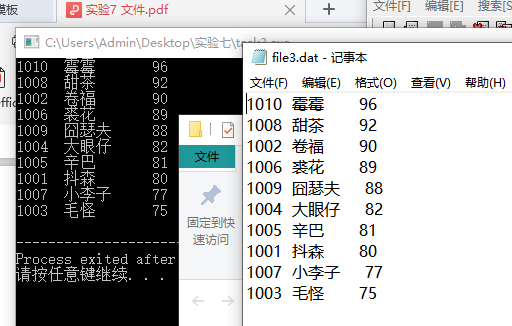 正确由高到低输出,生成了文件file3,dat,信息正确而且直观可读