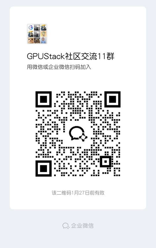如果二维码失效,请访问 GPUStack 项目主页获取最新入口:https://github.com/gpustack/gpustack/blob/main/docs/assets/wechat-group-qrcode.jpg