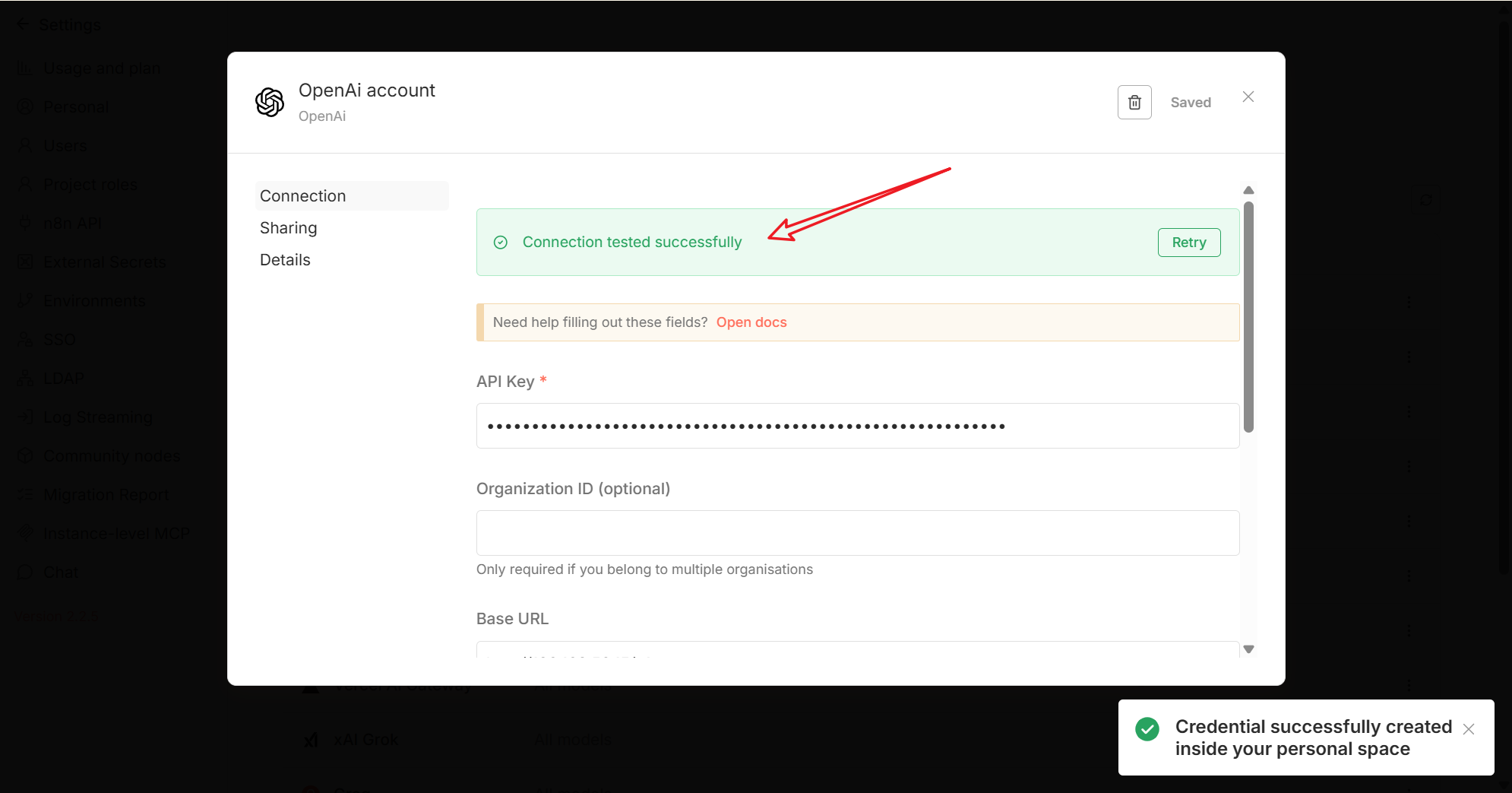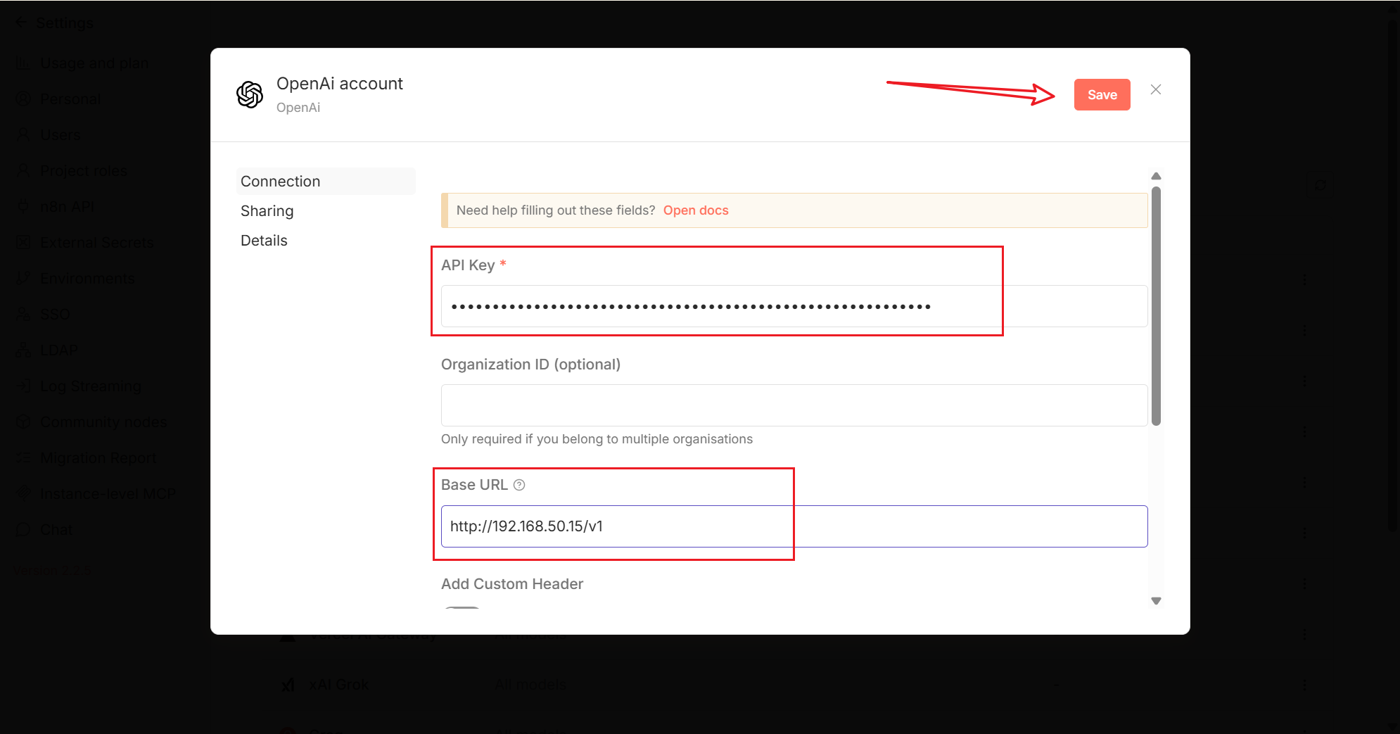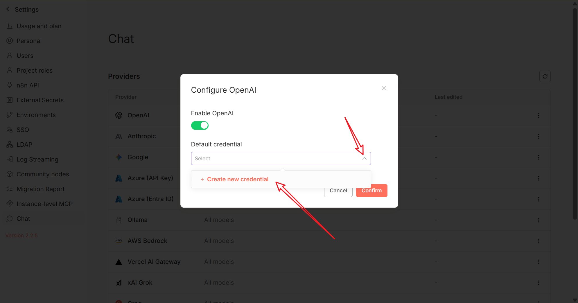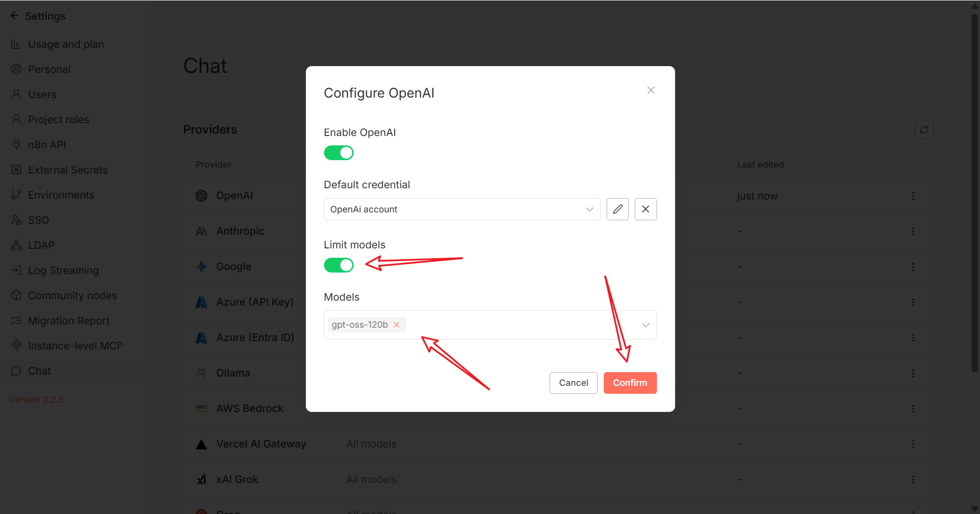 2. 配置 n8n 模型连接