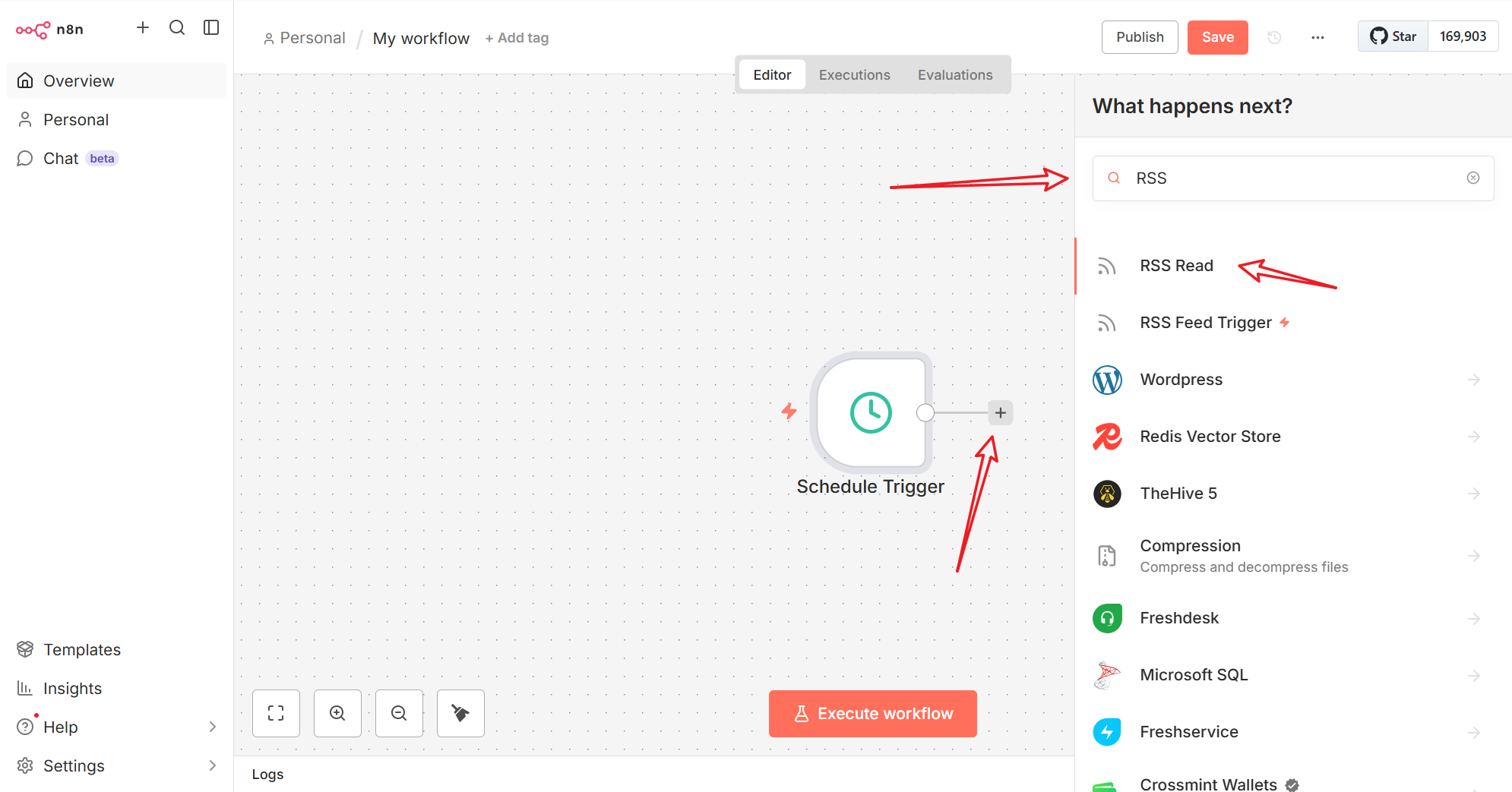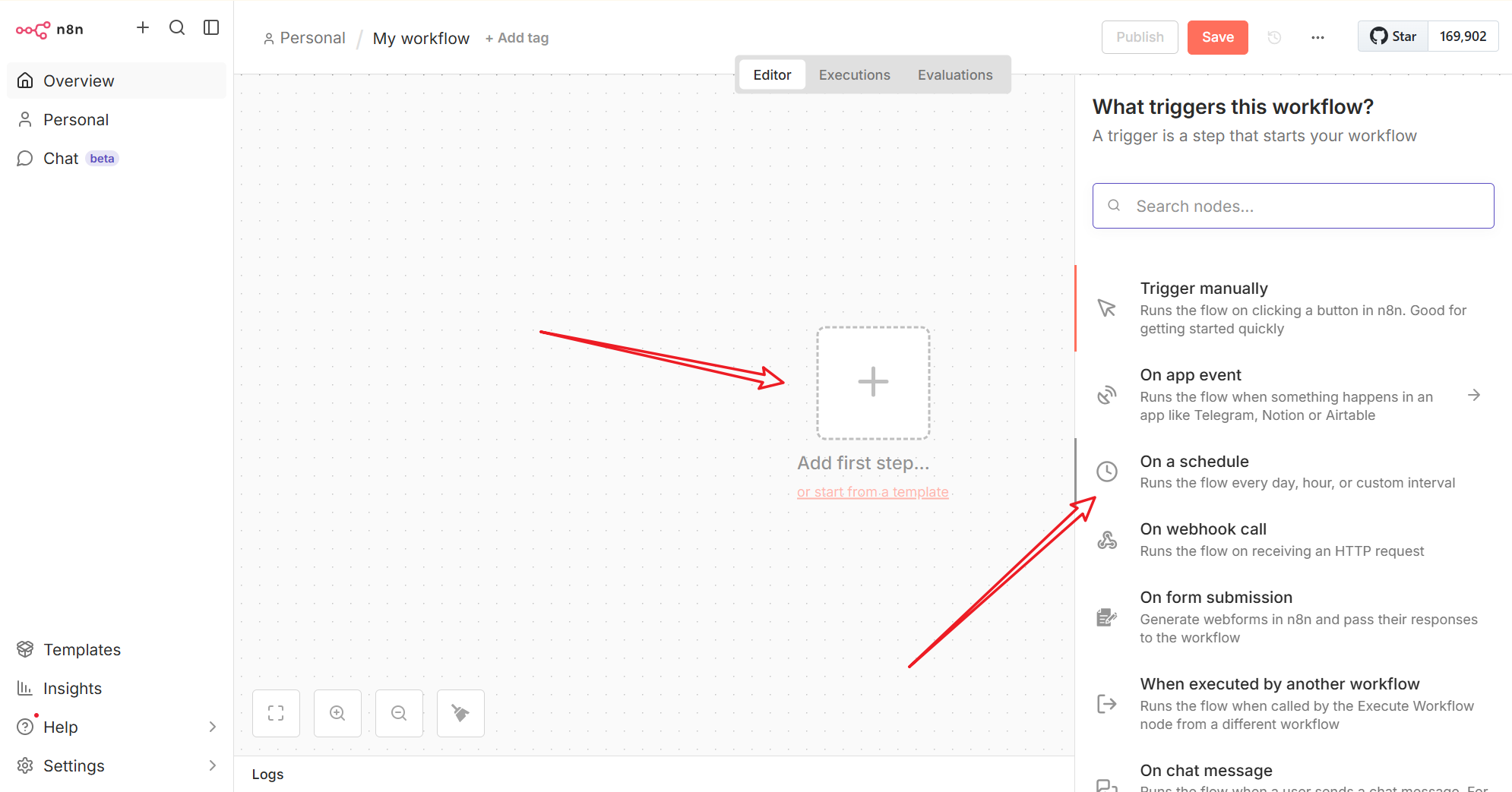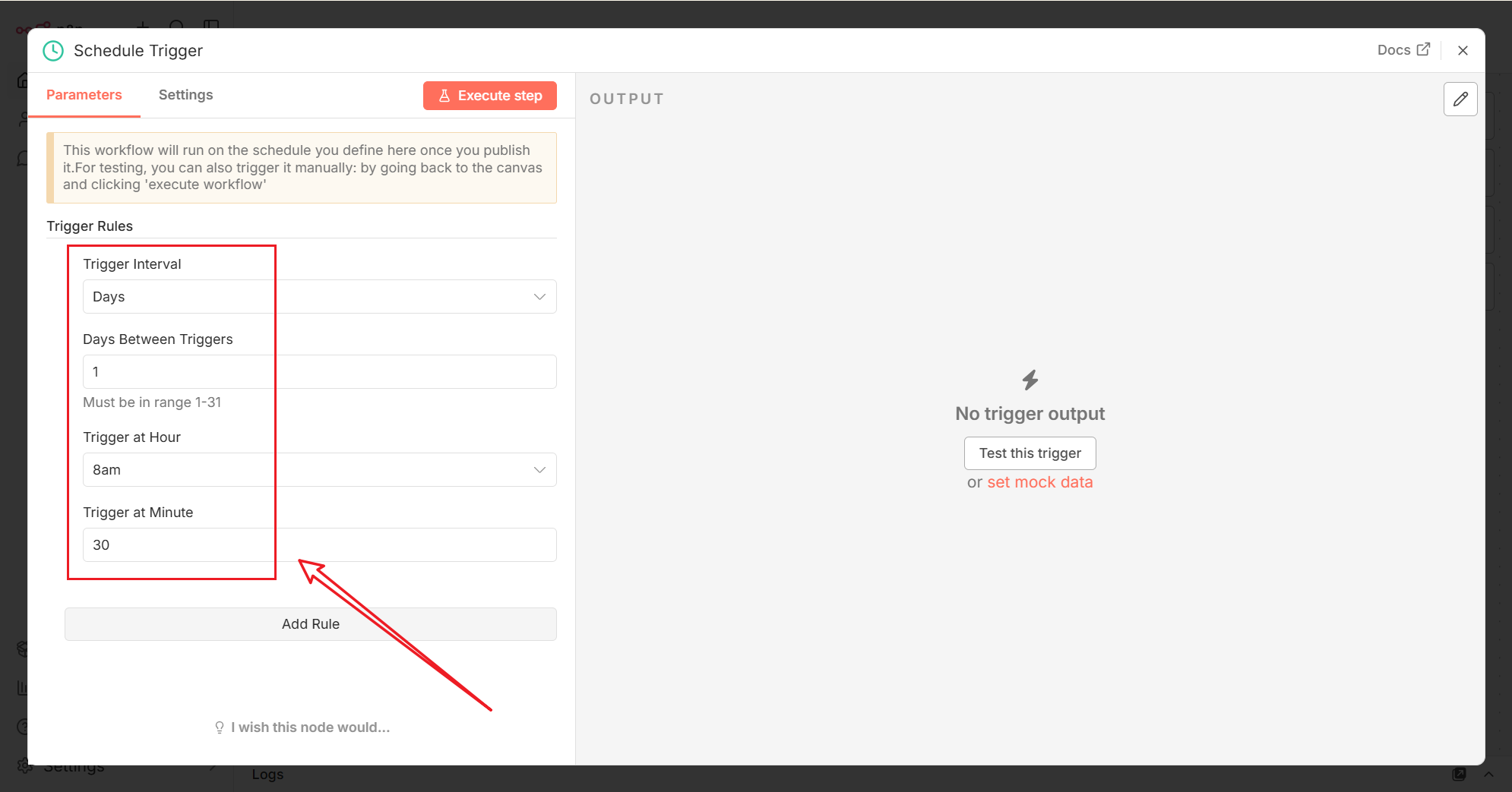 First step node为On a schedule类型
