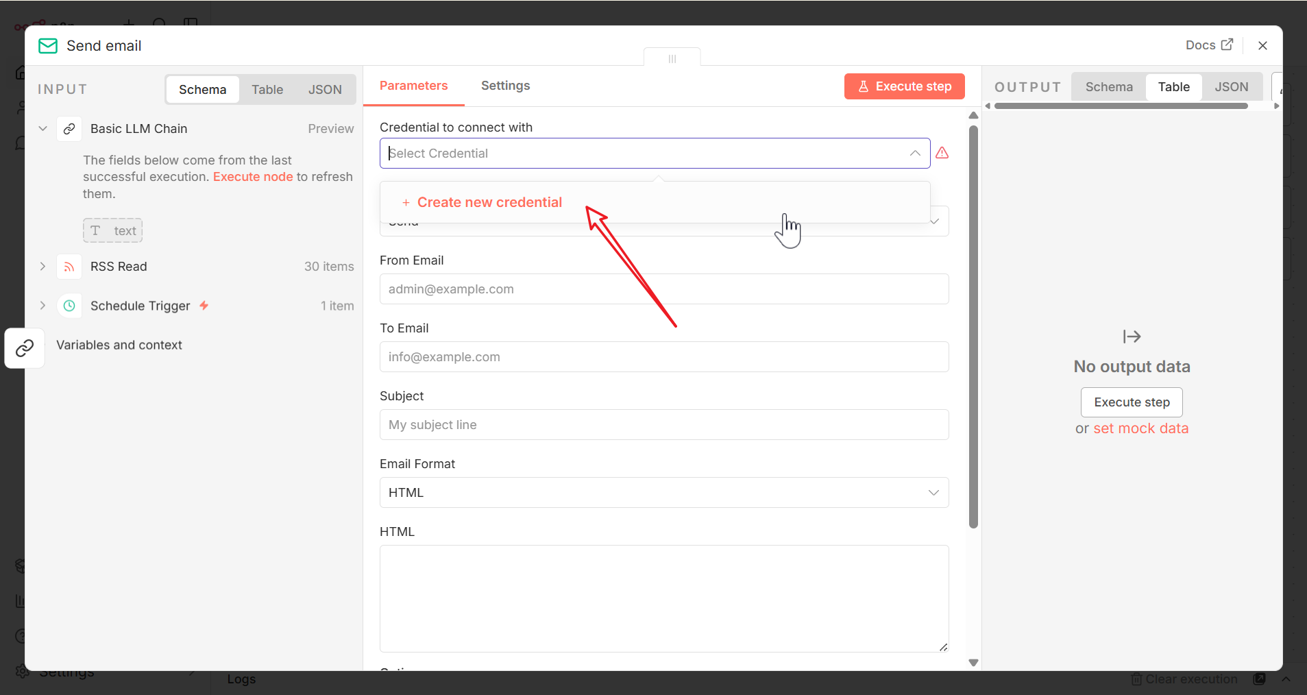 添加 Email 凭据,如下如所示,点击 Create new credential 会弹出配置窗口。