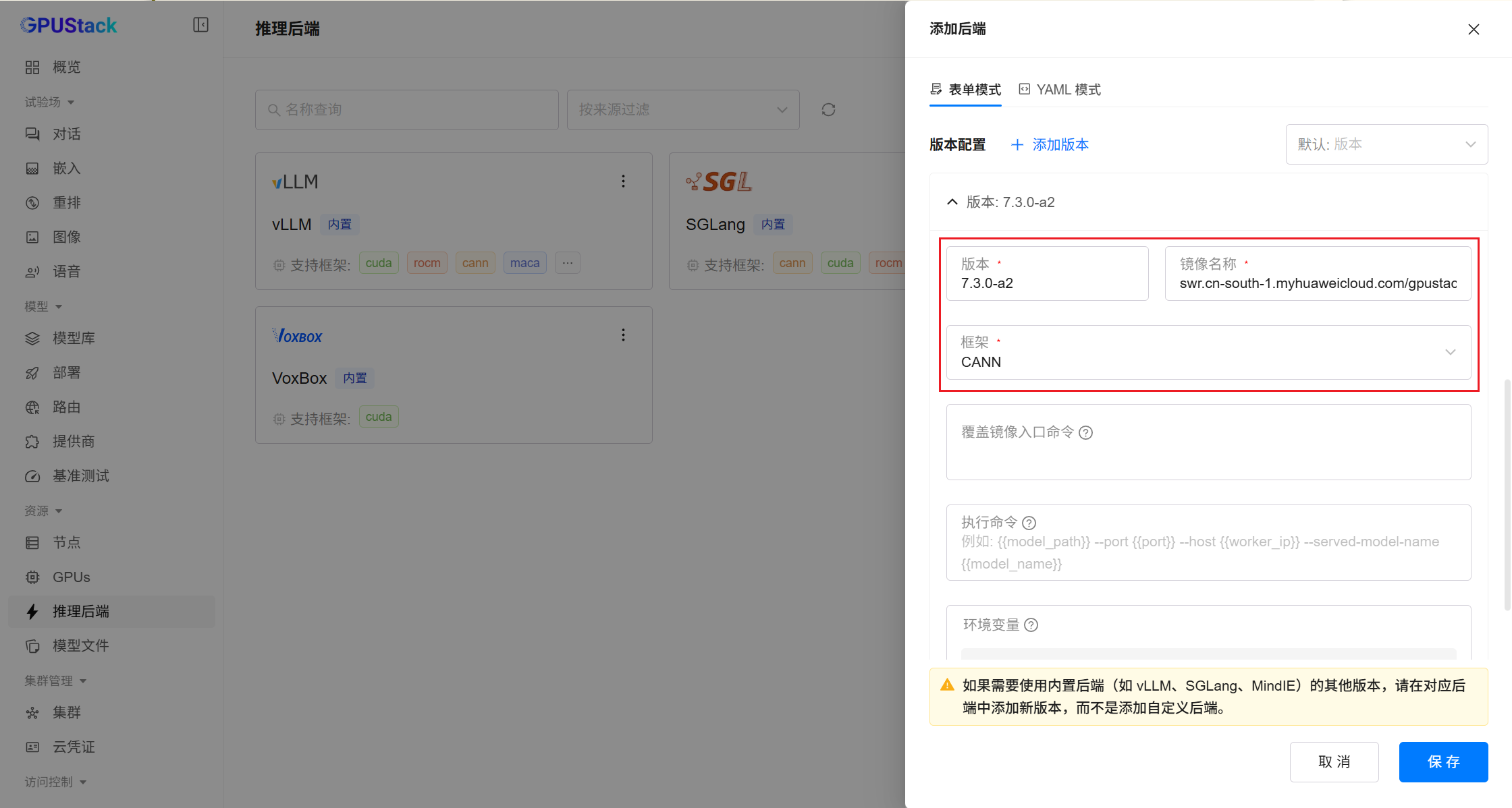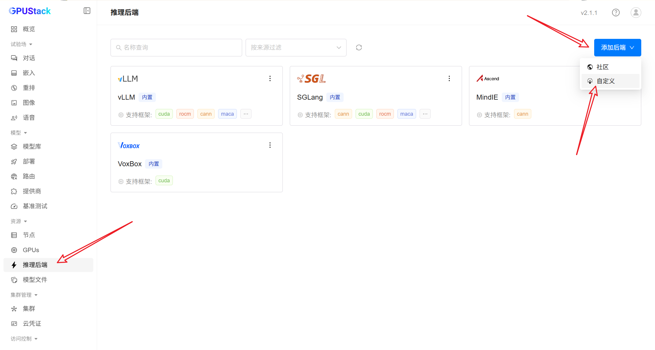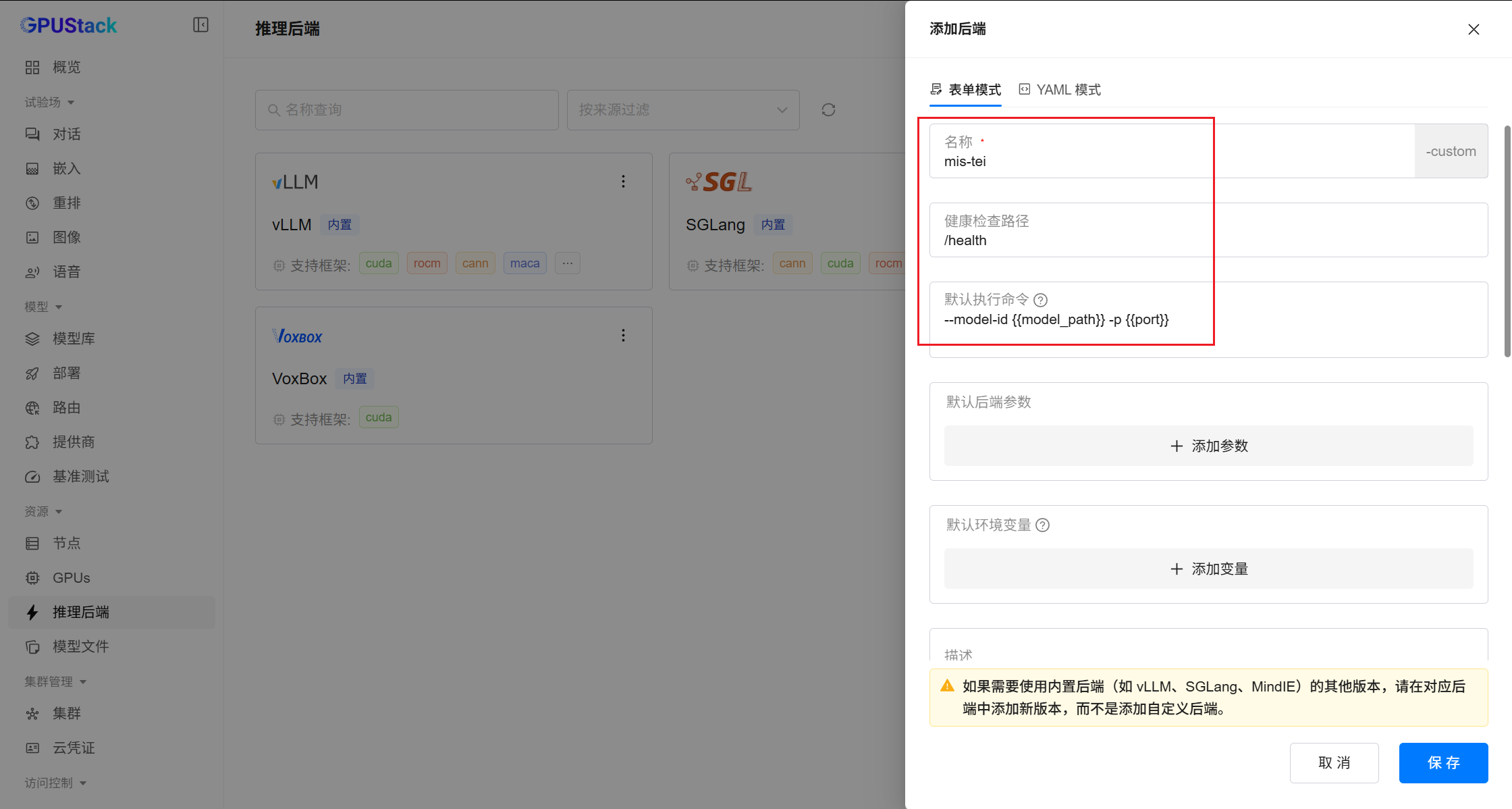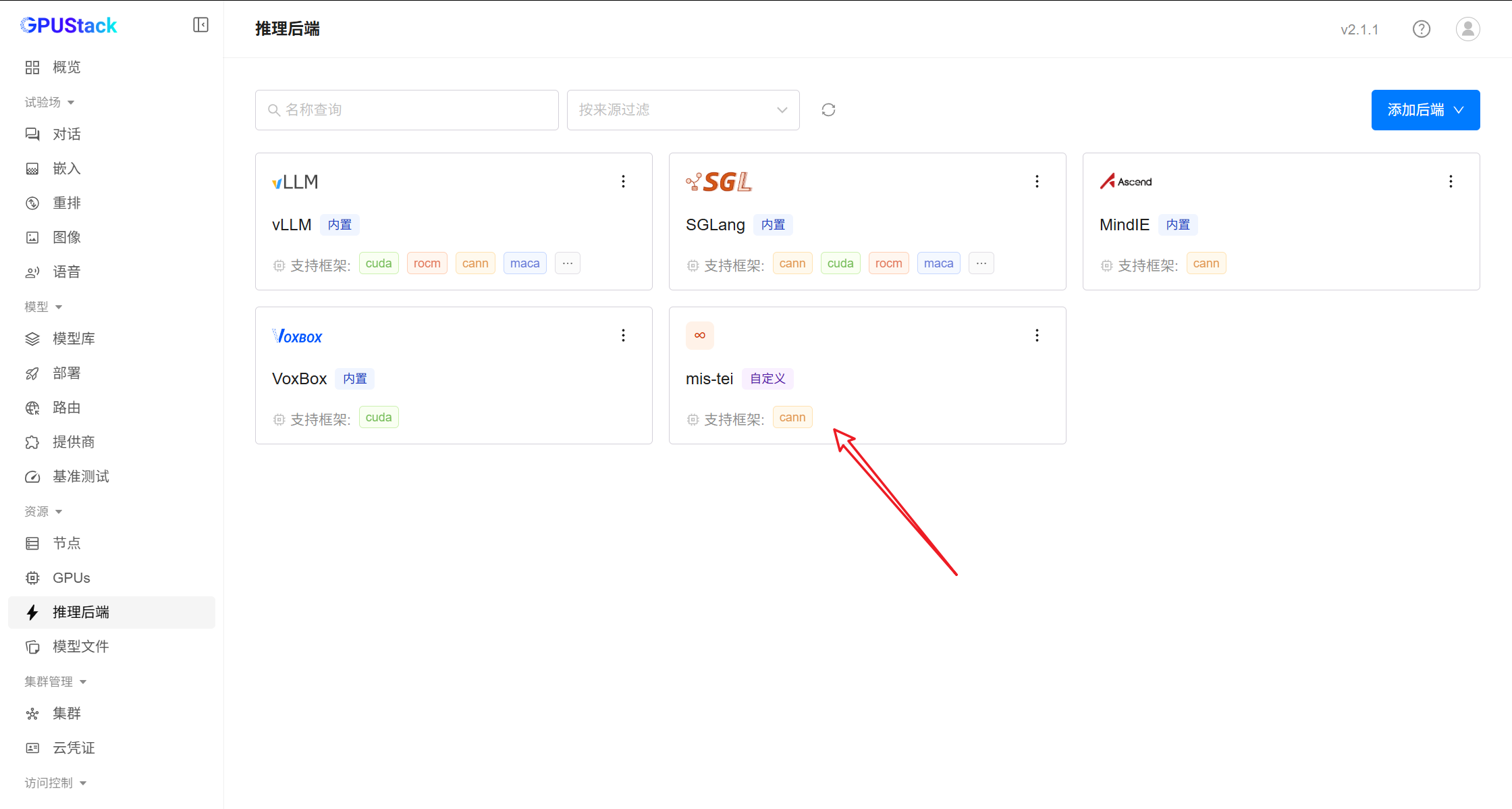 下个版本中,该后端将接入 GPUStack 内置社区后端,用户可直接一键启用。