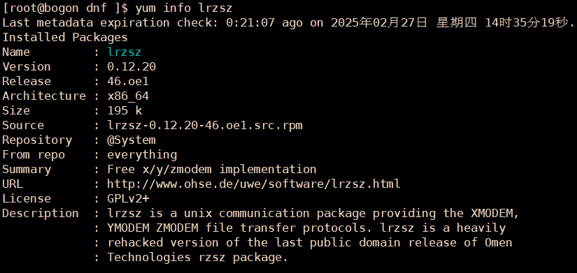 yum info lrzsz 包信息查询