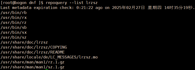 repoquery --list lrzsz 包结构查询