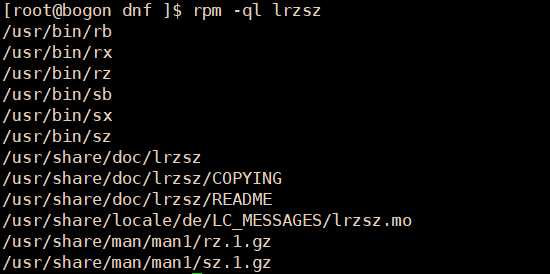 rpm -ql lrzsz 已安装包的包结构查询