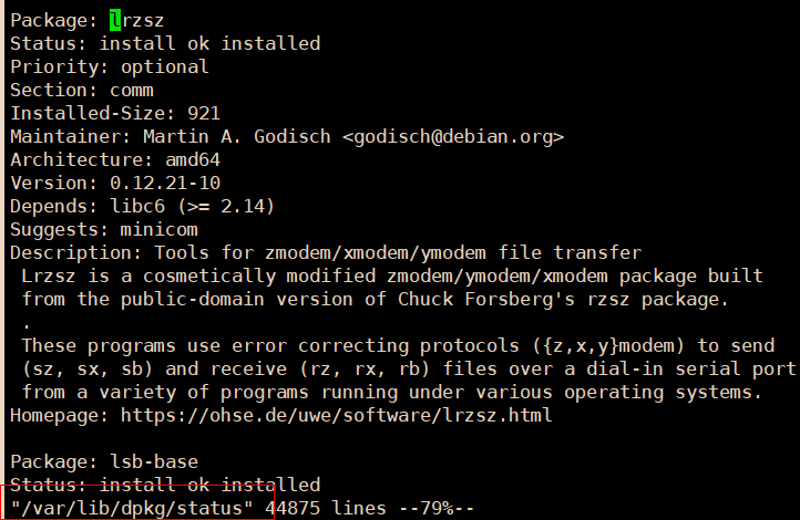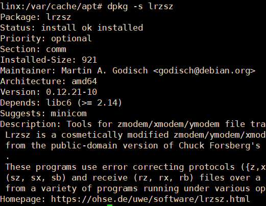 dpkg -s lrzsz 已安装包信息