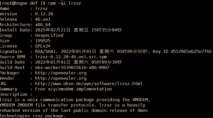 rpm -qi lrzsz 包简要信息