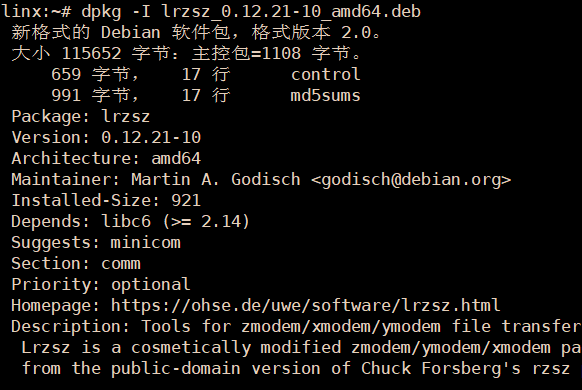 dpkg -I lrzsz.deb 离线包信息