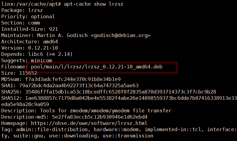 apt-cache show lrzsz