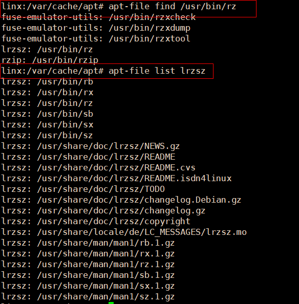 dpkg -S /usr/bin/rz 查找包文件