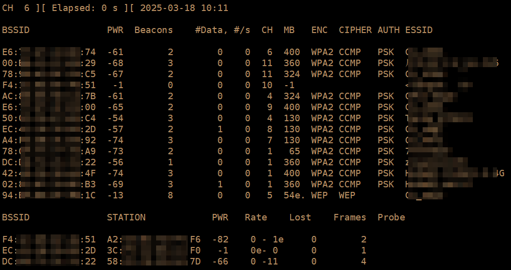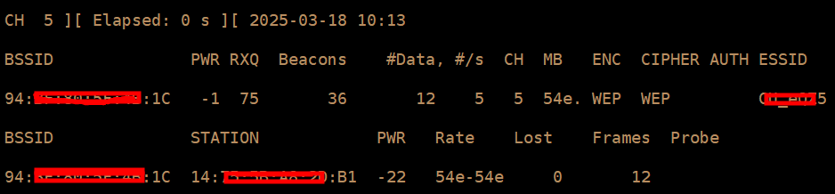 airodump-ng --bssid 00:11:22:33:44:55 --channel 3 --write WEPCrackingDemo wlan0mon