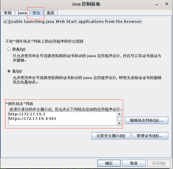 打开控制面板,点击安全-编辑站点列表,新增impi站点