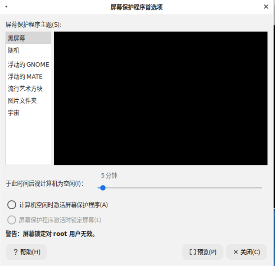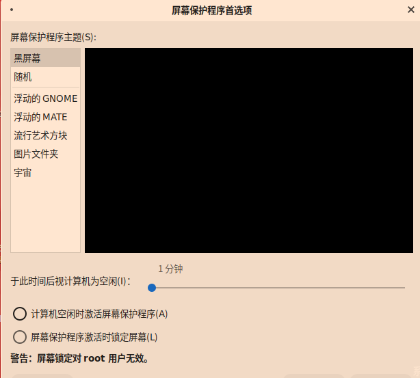 #设置多长时间后激活屏保(在勾选空闲时激活屏保时生效)