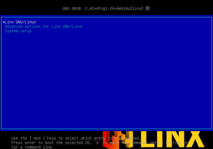 5、直接执行EFI\linx\grubx64.efi加载grub启动界面