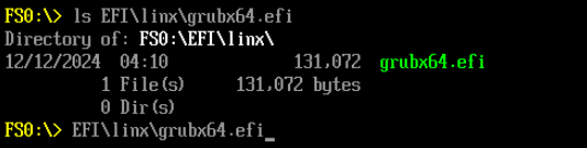 执行 FS0: 切换到FS0磁盘下,使用ls查看磁盘下文件