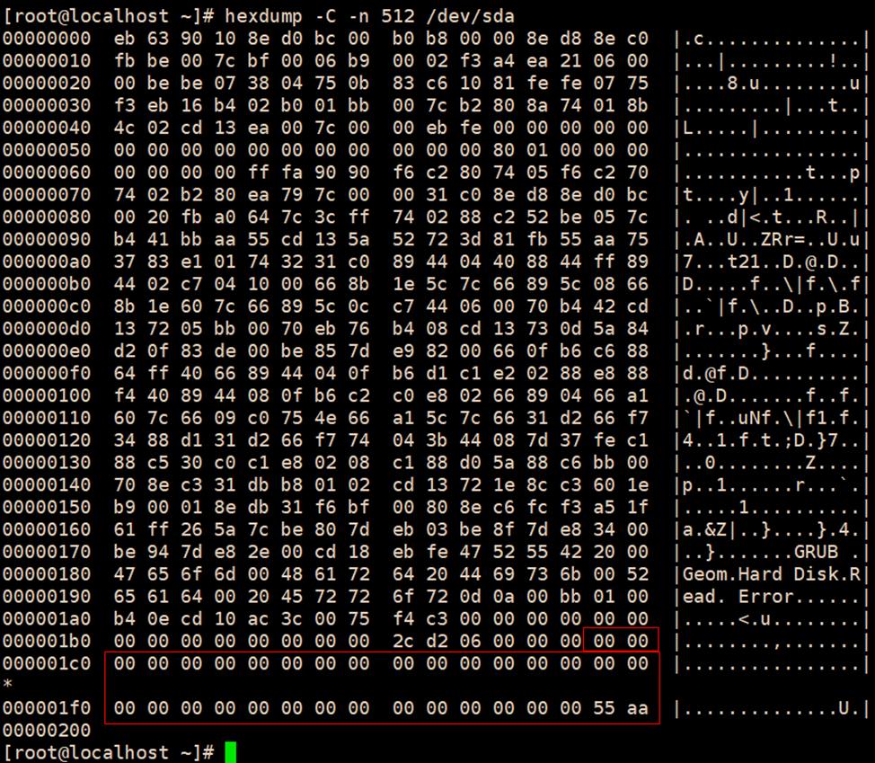 1、查看系统所在磁盘的前512字节